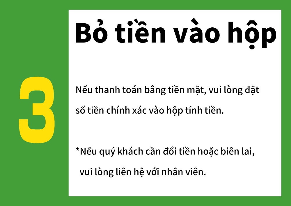 Nếu bạn có bất kỳ thắc mắc nào về cách sử dụng hệ thống, vui lòng hỏi nhân viên.